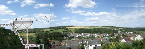 Der Entwurf wurde für ein Grundstück mit starker Hanglage in Strinz-Margarethä entwickelt. Der Garten befindet sich auf dem Dach, da er auf dem steilen Grundstück als Ebene Fläche nicht möglich ist. Das Erdgeschoss besteht aus einem Pavillon, wo sich Eingangs-, Koch- und Essbereich befinden. Durch seine Anordnung wird die Gartenfläche nicht unnötig verschattet! Die an diesem Nordhang üblichen Souterraingeschosse -kostenintensiv und in unattraktiver Lage- werden vermieden. Lediglich die privaten Wohnräume sind in einem in einem Geschoss am Hang untergebracht. Es wird zusätzlich über das Dach belichtet und bietet einen herrlichen Ausblick auf das Dorf und den Taunus.