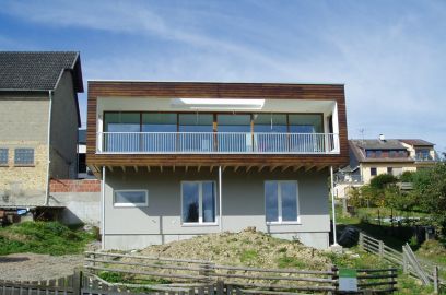 Auf einem relativ kleinem Grundstück mit Südhanglage sollte ein EFH zunächst am Fußpunkt des Hanges errichtet werden. Gleichzeitig stand eine Puddelkaut im Norden des Grundstückes zur Disposition. Unser Vorschlag stellt das Wohnhaus zusammen mit Stellplätzen auf die Kaut. So erspart sich die Bauherrschaft nicht nur den Rückbau, sondern wohnt in Ihrem Terrassenhaus in Südausrichtung mit herrlichem Blick über die Landschaft. Der Garten im Süden bleibt frei von einer Bebauung und wird mit Regenwasser aus der ehemaligen Kaut versorgt.