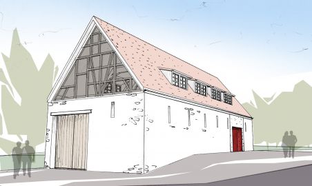 Eine historische Schafsscheune in der Michelstädter Altstadt soll durch ergänzende und behutsame Eingriffe in ein großzügiges Wohnhaus mit eingegliederter Werkstatt transformiert werden. Die notwendig gewordene Erneuerung des teilweise zu erhaltenden Dachgebälks über einem Bruchsteinmauerwerkskörper ermöglicht eine zusammenhängende Wohnfläche auf einer Ebene unter dem Dach. Das neu geschaffene „Scheunenhaus“ inszeniert über raumhohe offene Giebelflächen und traditionelle Gauben den Ausblick über die Dächer der Stadt.